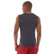 • Dark gray polyester spandex tank.