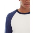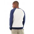 • Cream crewneck sweatshirt with navy sleeves/trim.